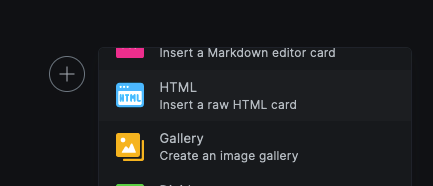 To add a gallery of up to 9 images, click on the + sign and select Gallery.